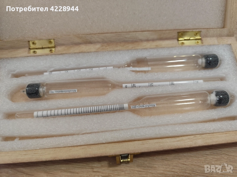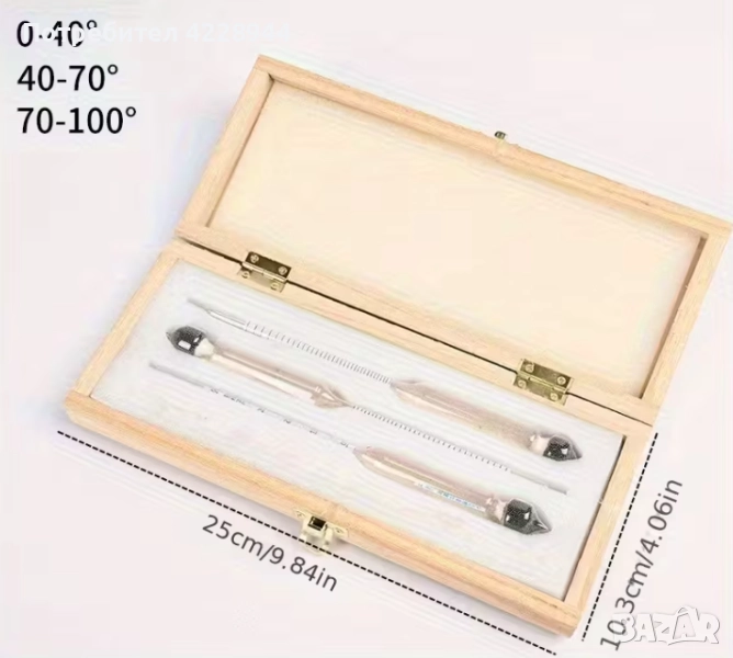 Подредени в елегантна дървена кутия, спиртомерите са лесни за съхранение и отлична идея за подарък за всеки майстор на домашна ракия.