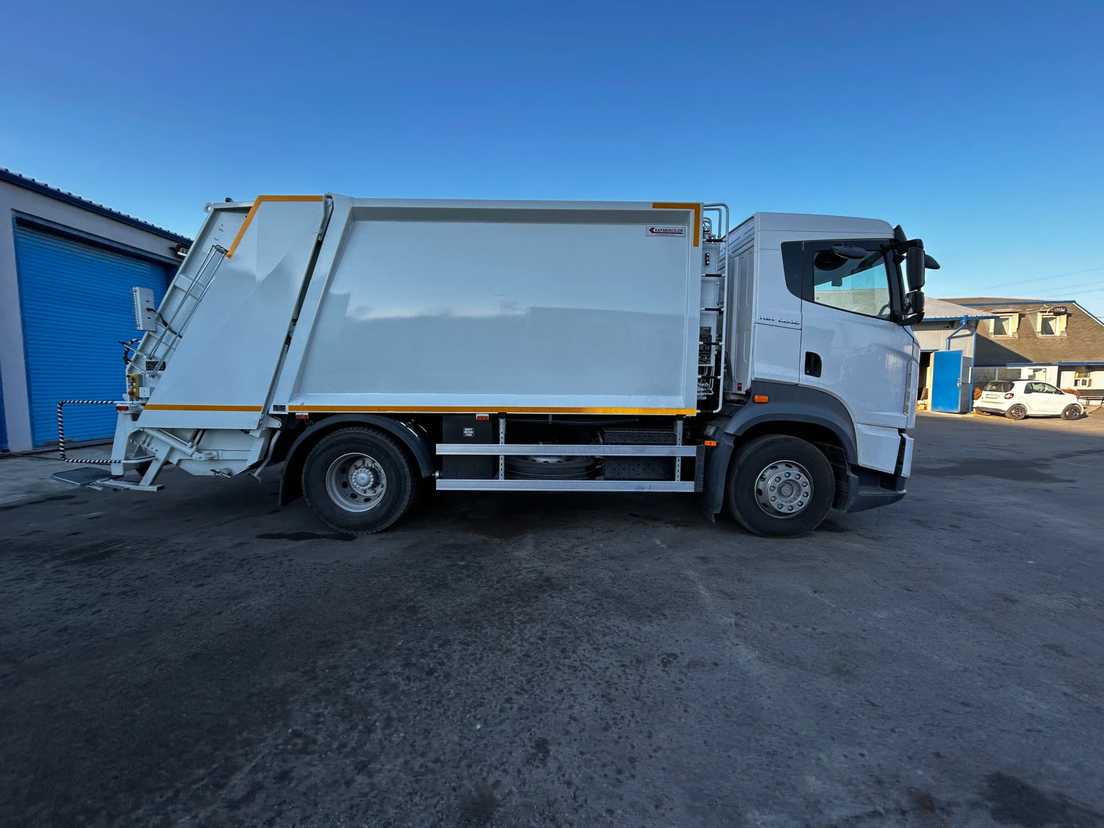 Сметосъбиращ автомобил BMC TGR2032 с надстройка тип вариопреса с обем на бункера 15м3, степен на компактиране 4: 1, шутунг за контейнери от 120Л до 1100Л, рамена за разтоварване на контейнери тип бобър, пултове за управление на надстройката от лявата и дясната страни. Степенки, камера за задно виждане и осветление в задната част на камиона. BMC е един от най-големите производители на тежкотоварни автомобили в Турция. Компанията предлага пълна гама от влекачи,