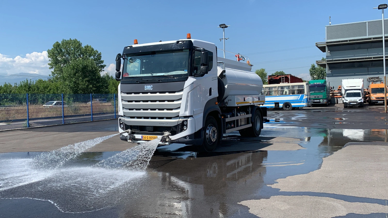 цистерна с обем 10000L. Колесна формула 4x2, скоростна кутия ZF (9+1 степенна), резервоар за гориво с капацитет 405L, турбо-дизелов двигател с интеркулер. Цистерната е с елипсовидна форма с вълноломи, нивомер, горен люк за пълнене с площадка, хидравлично управляема макара за ръчно миене с дължина 30м, лафетен струйник в задната част на цистерната управляван чрез джойстик от кабината на водача, преден струен агрегат за миене тип супла (2 броя), задна рейка за оросяване, водна помпа задвижвана от PTO - то на автомобила. BMC е един от най-големите производители на тежкотоварни автомобили в Турция. Компанията предлага пълна гама от влекачи, самосвали и други. Би Ем Лизинг-Трейд АД е официален представител за България на ВМС Турция. Тежкотоварните и специализирани автомобили ВМС, които предлагаме са качествени, на световно ниво, тъй като производителят използва възможно най-модерни технологии. Предоставяме възможност за избор от изключително широка гама автомобили, като за всички тях се предлагат опции за различни надстройки в зависимост от нуждите на клиента. Освен това безспорно предимство при избора на BMC е съотношението качество/цена. Купувачът спестява значителни средства в сравнение със западноевропейските аналози, като не прави компромиси в качеството. Би Ем Лизинг-Трейд АД разполага с оторизиран сервиз за гаранционно и извънгаранционно обслужване, оригинални резервни части, предлага обучение и демонстрации на предлаганите нови автомобили ВМС.