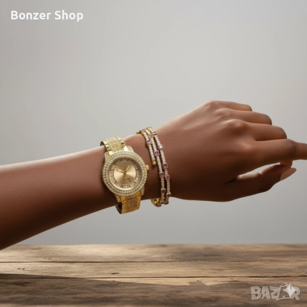 Бляскав дамски комплект часовник и гривна → Обява 51997558