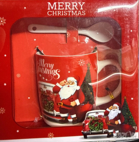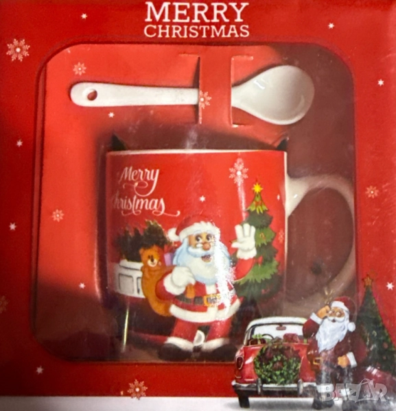 Размерите на чашата са 9.5 х 7 х 7.3 см, изработена от качествен порцелан. Чашата и лъжичката се предлагат в красива, цветна кутия, идеална за подарък или лична употреба през празничния сезон.