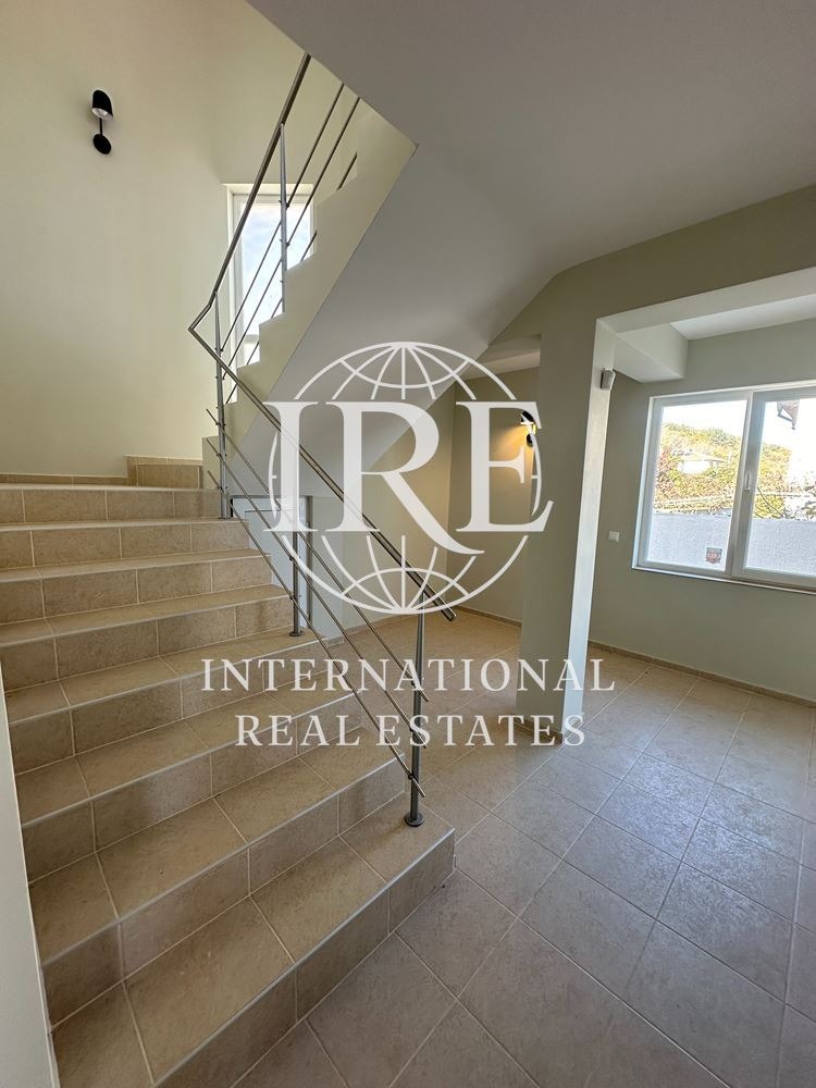 На първия етаж ще откриете входно антре, просторна дневна с кухненска част и излаз към тераса и голяма веранда, която може да се превърне в барбекю зона или приятно място за отдих. Има санитарен възел, килер и вътрешни стълби към втория етаж, където са разположени три спални, общ санитарен възел и просторна тераса с морска панорама!
