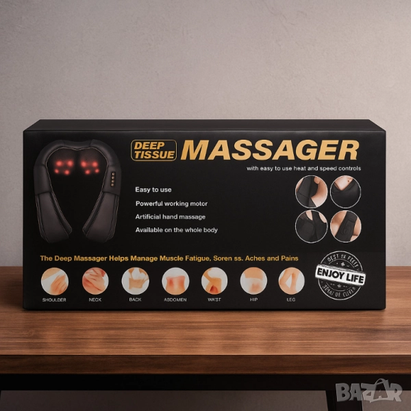 Тип: електрически шиацу масажор за шия, рамене, гръб и тяло;