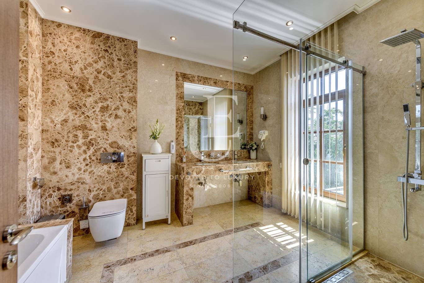 Къщата се предлага напълно обзаведена и предлага просторни, светли помещения с всички удобства за комфортен и изискан начин на живот. Разполага с 300 кв.м. перфектно поддържан озеленен двор, осигуряващ спокойствие и уединение.
