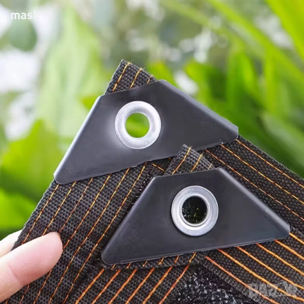 - Специалните кабели и монтажни пръстени, разположени в ъглите му, ви помагат при това. В четирите края има дупки, където можете да го вържете с въже и разпънете над вашия кът за отдих и релакс, включително и над басейна, за терасата, за градината и др.