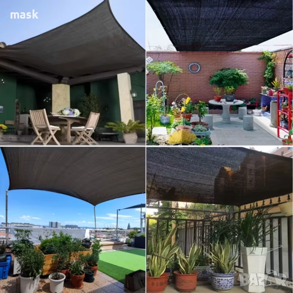 - Можете да го ползвате както за градината да предпазвате растенията от горещото и парещо слънце, така и да покриете маса със столове за отдих.