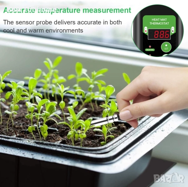 Съвместим с повечето нагревателни постелки за разсад: Нашият дигитален термостат е съвместим с почти всички нагревателни постелки за разсад. Поддържа стабилна температура между 20°C и 42°C за професионални нужди.