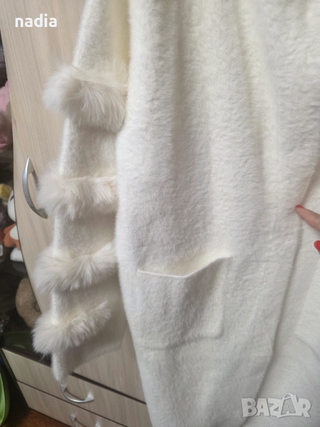 Кашмирена жилетка бяла с пух → Обява 51999899