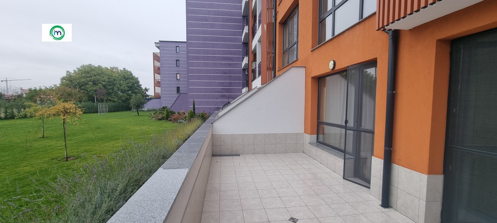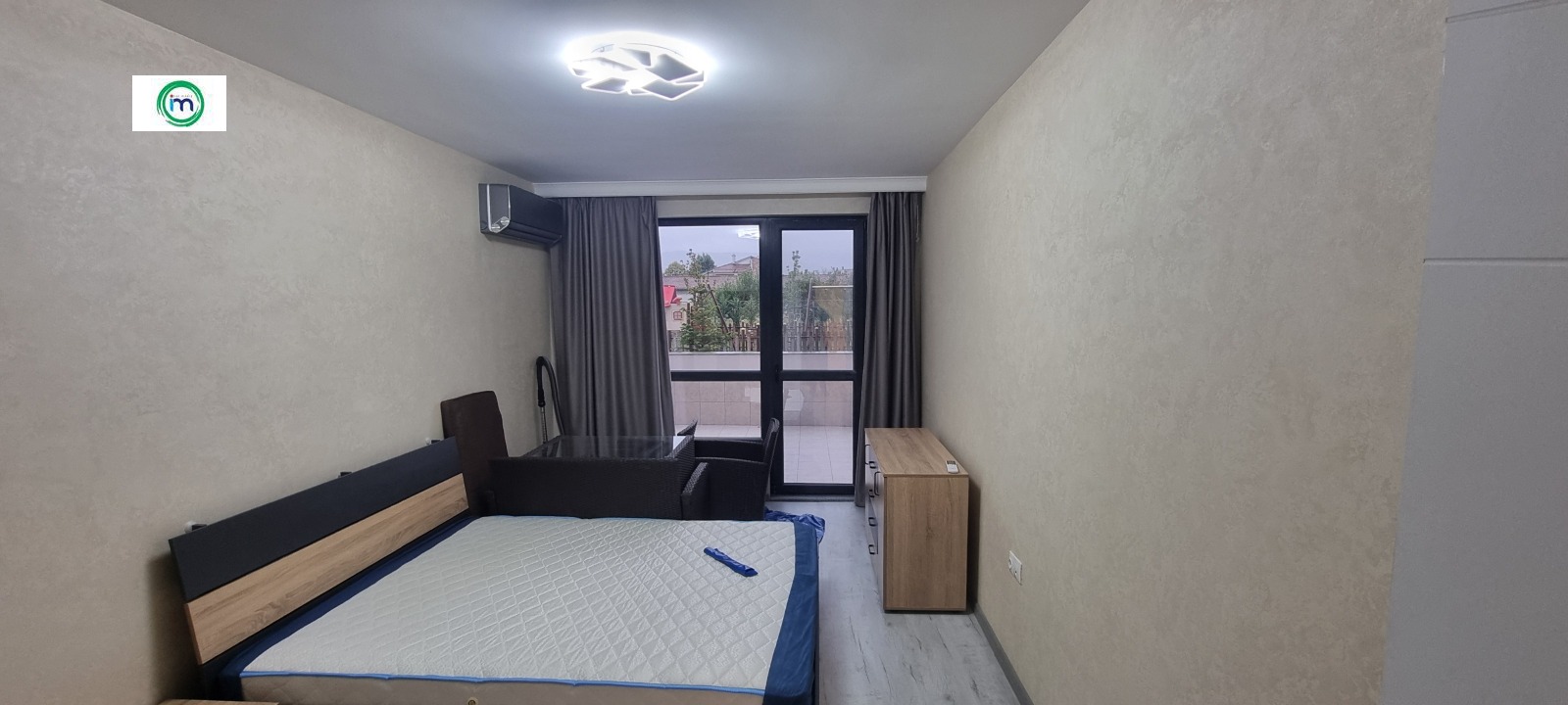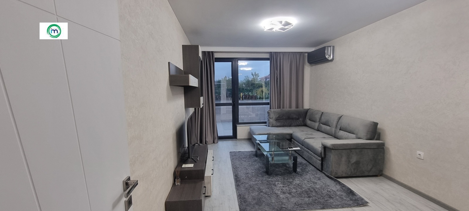 Агенция за недвижими имоти 'Имот Медия' предлага двустаен апартамент на партерен етаж в затворен комплекс 'Dream Garden 2'. Жилището се състои от: всекидневна с кухненски бокс, спалня, санитарен възел и голяма тераса, напълно оборудван със съвременни ел. уреди и мека мебел, отоплението е с климатици висок клас, в наемната цена е включена и такса за поддръжка на общите части на комплекса.
