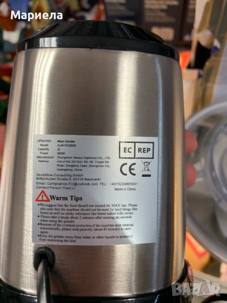 Има забележки по опаковката , с което цената е съобразена !Електрическият чопър е с мощност 600W .