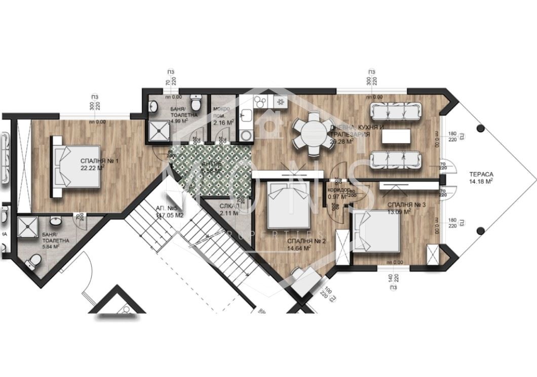 Монс Пропъртис има удоволствието да ви представи за продажба четиристаен апартамент в SPA RESORT MALKI CHIFLIK на 1 км, от гр. Велико Търново.