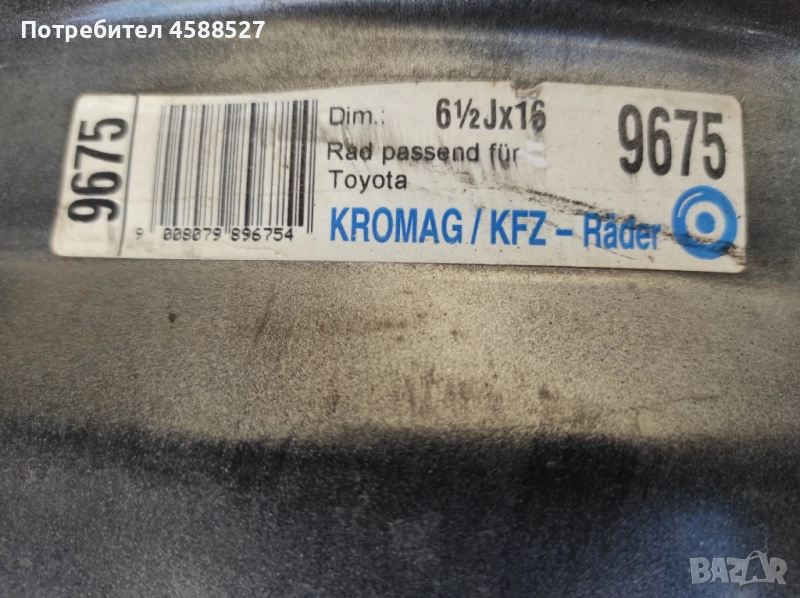 Железни джанти 16'' 5х114.3 6,5J, ц.о-60,1мм за Тойота рав4 Toyota Rav4 → Обява 52000957