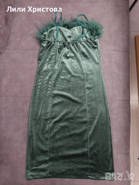 Зелена рокля с пера, снимка 1 - Рокли - 52001564 Зелена рокля с пера, снимка 2 - Рокли - 52001564 1/2