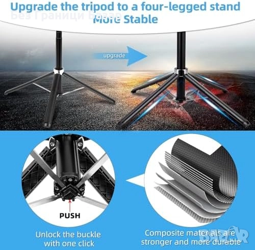 Здрава алуминиева конструкция с противоплъзгащи крачета за стабилно заснемане
