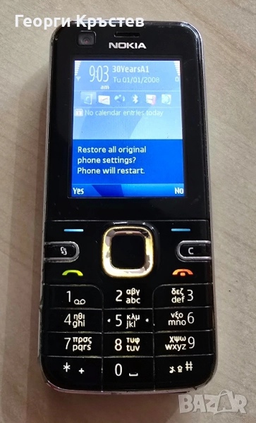 Телефона се включва и работи идеално, тестван с А1, нямам друга за проба, зарежда си батерията, горе - долу добър външен вид, но клавиатурата, по - скоро навигационния бутон е обелен, както и долу лайсната е счупена, и пада, без заден капак и без капачето над камерата, вижда се на снимките, по - скоро за смяна на панел, клавиатура, подсветка, камера, слушалка, микрофон, всичко е ОК, няма БГ меню, без батерия и зарядно.