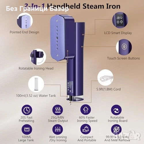 Нова Мини парна ютия 1200W, 3 нива пара, загрява за 20 сек, пътуване и дом