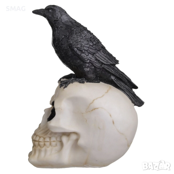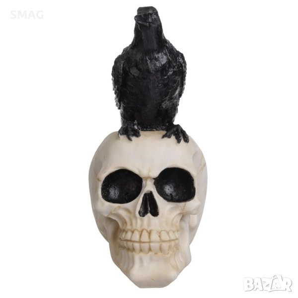 Създайте впечатляваща атмосфера у дома – с тази елегантна и загадъчна Хелоуин композиция от череп и гарван.