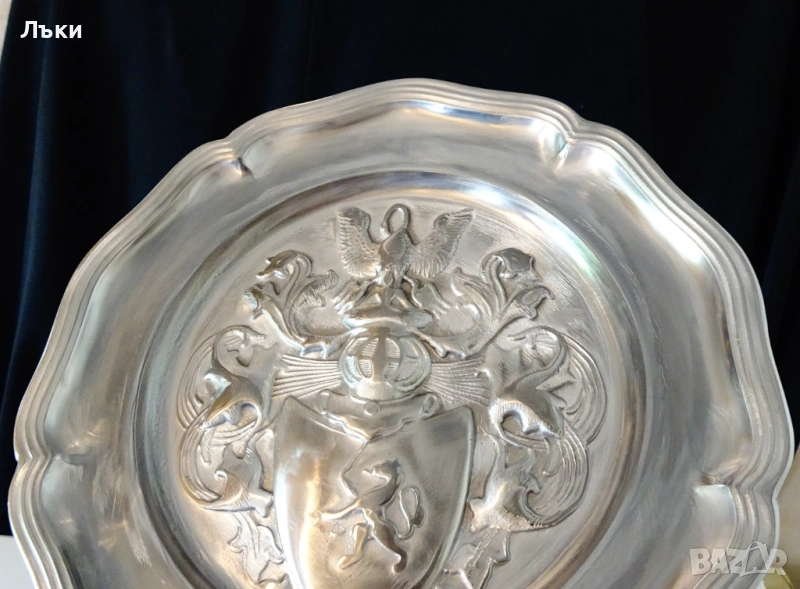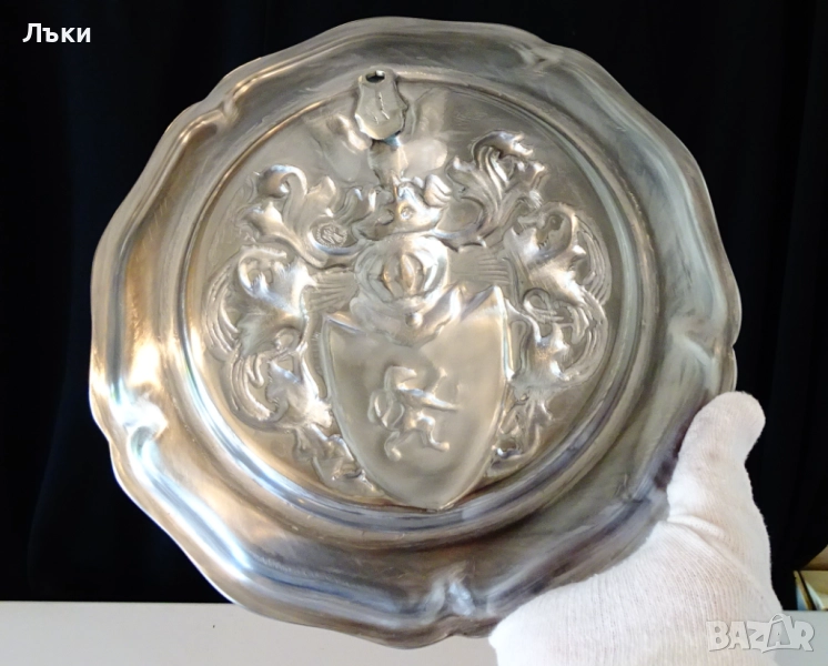 Старинна немска калаена чиния за стена,пано,майсторска ръчна