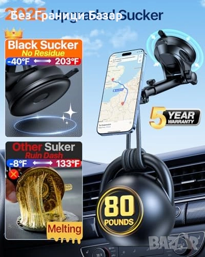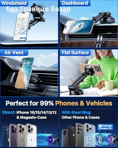Съвместим с MagSafe телефони и всички Android модели с метален пръстен