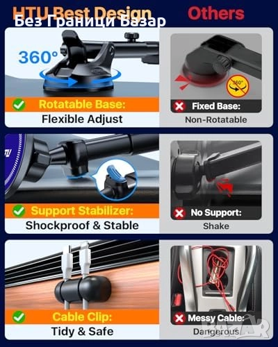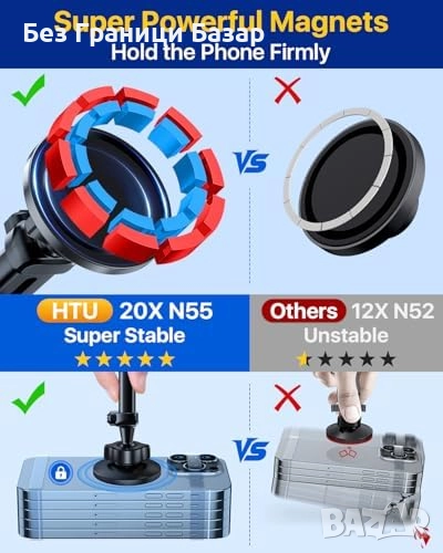 20 неодимови магнита осигуряват сигурно и стабилно закрепване на телефона