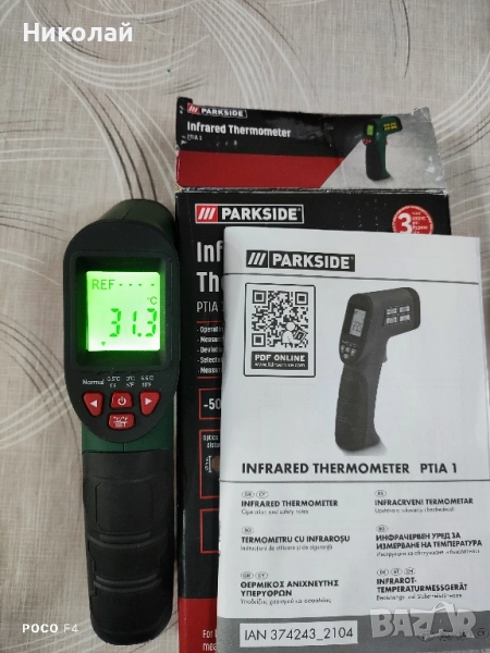 Инфрачервен уред за измерване на температура PARKSIDE PTIA 1,като нов работещ нормално.БЕЗ гаранция! Изпращам с преглед и тест.Повече информация на лично или на посочения телефон.