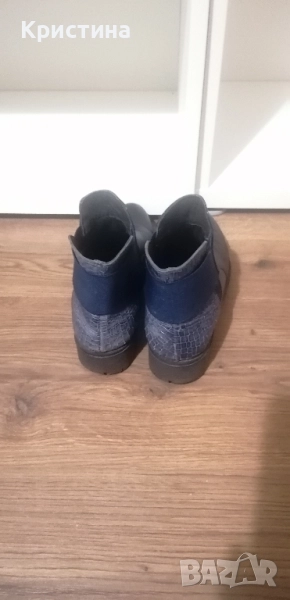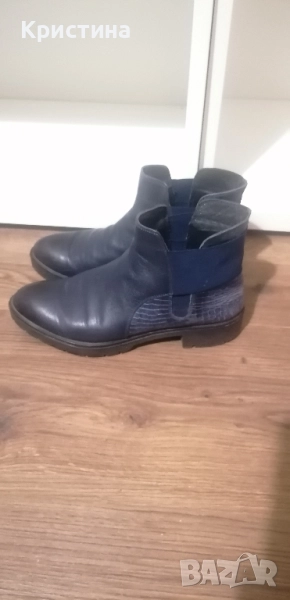 Използвани сини дамски боти от естествена кожа, със стелка от естествена кожа. Номер 37, дължина на стелката - 24 см.