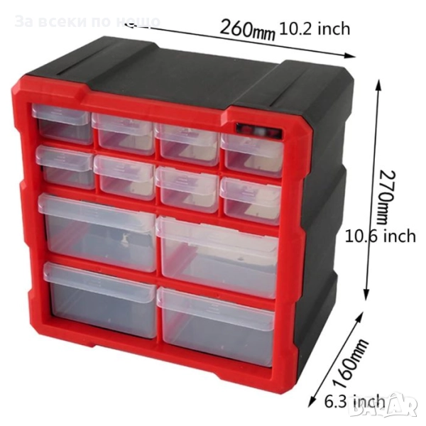 Органайзер за стена с 12 чекмеджета – пластмасов шкаф за съхранение на дребни части