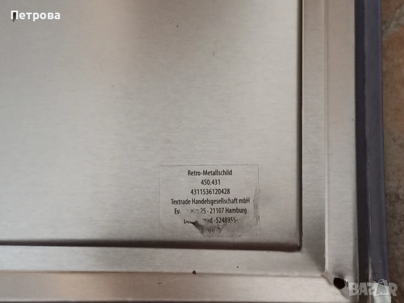 Табелата е немска. Цената и е 30 лв. Размерите са 29.5 см. на 39.5 см.
