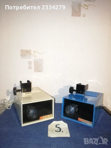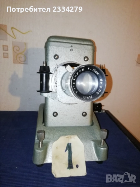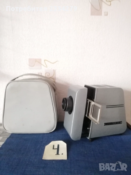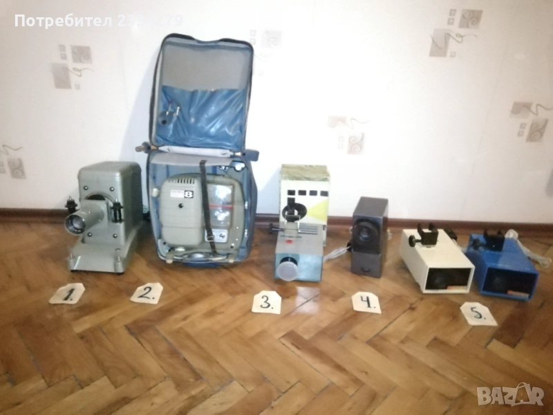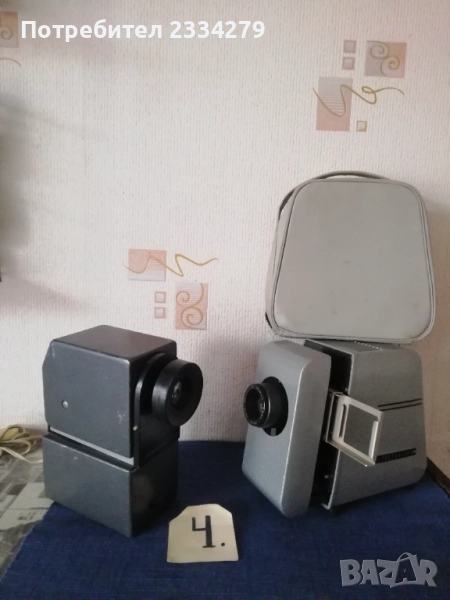 диапозитиви, филмоскоп за децки филмчета, домашна кинокамера. N:1 голям рядък комбиниран апарат за прожектиране на децки филми и диапозитиви, производство ,,Учтехпром" ДИП-София F-10см.,професионален от 60-70години на Соца, цена 70лв.; N:2 стар киноапарат филми МАРКА ,,SEKONIC" MODEL 30C Protektor 8m/m. Nagano JAPAN. Згъваем поставен в кожен куфар с много аксесоари, резервни ремъци, четки и други, комплект книжка инструкция, има и лента с филм на Чарли Чаплин. Почти неизползван, цена 100лв.; N:3 филмоскоп, апарат за прожектиране на децки филмчета, неизползван с оригинална кутия, модел 1980год., цена 45лв.; N:4 диапозитиви, апарати излъчване на диапозитиви изработени в различни години и модели: РСФСР, СССР, USSR 1977-90година, цена 15лв. черният, сивият здрасти 20лв.; N:4 стар немски згъваем диапозитив ,,АSPEKTAR 150-A" поставен в чанта с инструкция, неупотребяван, от 1975год., цена 30лв.; N:5 диапозитиви, апарати за децки филмчета, перфектно състояние от 90-те години, цена 30лв. за брой.
