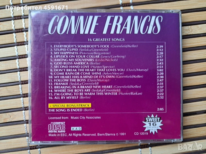 Connie Francis – 16 Greatest Songs, снимка 1 - CD дискове - 52005021 Connie Francis – 16 Greatest Songs, снимка 2 - CD дискове - 52005021 Connie Francis – 16 Greatest Songs, снимка 3 - CD дискове - 52005021 1/3