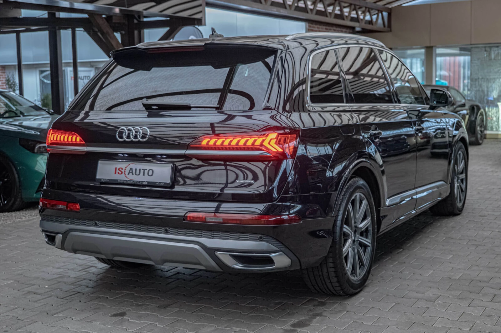Наличен Audi Q7 50TDI Специално оборудване: Пакет оборудване: S line Sport / Plus, електрически външни огледала. Регулируеми, отопляеми и сгъваеми, с автоматично затъмняване и асистент за окачване на бордюра, Isofix крепежни елементи за детско столче на предната пътническа седалка, резервоар за гориво: 85 литра, волан (спортен/кожен - 3-лъчев, сплескан отдолу) с мултифункционална функция и функция за превключване на предавките, алуминиеви джанти 8x20 (5 успоредни спици, S-Design, за зимни гуми), алуминиеви джанти 9x20 (10 спици, звезден дизайн, контрастно сиви, частично полирани), металик боя, камера за задно виждане, слънцезащитна щора на задното стъкло и страничните прозорци (механична), диференциал с ограничено приплъзване, тонирано задно стъкло (затъмнено стъкло). Допълнително оборудване: въздушна възглавница за водача/пътника, Audi connect (интернет-базирани услуги), Audi connect (система за спешни повиквания и асистенция), Audi Drive Select, Audi music интерфейс, външни огледала в цвета на каросерията, бутони за управление с визия на стъкло, включително разширена алуминиева визия, спирачен асистент, боядисани в черно спирачни апарати, спойлер на покрива, релси на покрива (алуминий), сензори за паркиране отпред и отзад, акустични и визуални със селективен дисплей (APS Plus), осветени прагове на вратите с алуминиева инкрустация и надпис, система за подпомагане на шофирането: асистент при потегляне (асистент при задържане), система за подпомагане на шофирането: спирачен асистент (Audi pre sense front), система за подпомагане на шофирането: функция за аварийно спиране в града (Audi pre sense City), система за подпомагане на шофирането: система за защита на пътниците (Audi pre sense basic), система за подпомагане на шофирането: предупреждение за напускане на лентата, система за подпомагане на шофирането: разпознаване на пътни знаци, предно стъкло с топлоизолиращо стъкло, радио ключ, преграда за багажно отделение (мрежа), покривало/ролетна щора за багажно отделение, електрически капак на багажното отделение. задвижване (отваряне + затваряне), пакет гланц, резервоар за урея (SCR): 24 литра, LED задни светлини, вътрешно огледало с автоматично затъмняване, Isofix крепежни елементи за детска седалка, каросерия: 4 врати, автоматичен климатик, дигитален арматурно табло (виртуален кокпит), система за въздушни възглавници за главата (странична защита), кормилна колона (волан) механична. Регулиране на височина/дължина, пакет осветление, MMI Touch (сензорен екран), актуализация на модела, 3. 0 литров - 210 kW V6 24V TDI двигател, мултимедиен интерфейс MMI Navigation Plus с MMI Touch, пакет за непушачи, междуосие 2995 мм, комплект за ремонт на гуми, дисплей за следене на налягането в гумите, разделена/сгъваема облегалка на задната седалка, ниски емисии съгласно стандарта за емисии Euro 6d-TEMP, предна странична въздушна възглавница, система за разпознаване на заета седалка за предпазни колани, калъф/тапицерия на седалката: комбинация кожа/mono. pur 550, отопляеми предни седалки, DSP озвучителна система/Audi озвучителна система, спортно окачване (адаптивно въздушно окачване - спортно), бутон старт-стоп, система старт/стоп, брони със спортен дизайн (S-line), универсален Bluetooth интерфейс, подготовка за мобилен телефон/мобилен телефон с Bluetooth интерфейс, зелено тонирани топлоизолационни стъкла, система за централно заключване/стартиране Keyless-Go Лизинг! За повече информация 0882111022 info@isauto. net
