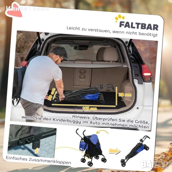 ✔ Размери в сгъваем вид: 113Д x 30Ш x 28В см