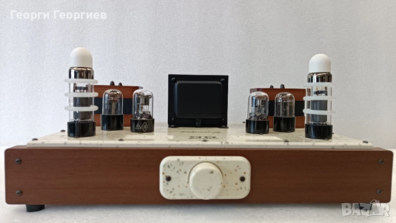 без обща обратна връзка. Входна лампа 6Г7, с автоматично преднапрежение с катодни кондензатори Rubycon Black Gate. Изходна лампа – PL36. Галванична (постояннотокова) връзка между