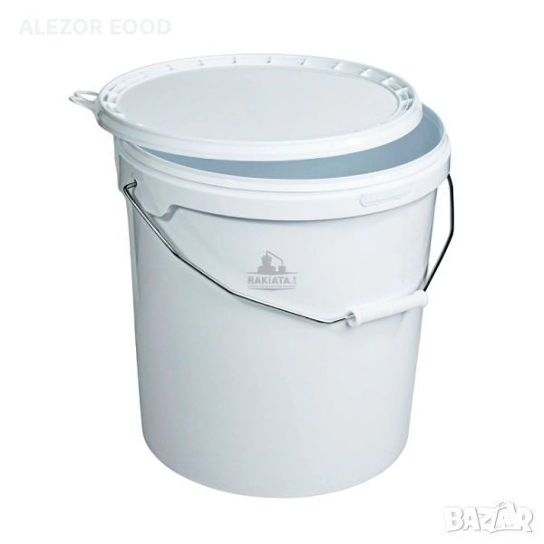 Качествена дебелостенна бяла кофа 20 литра от полипропилен за хранителни цели с капак, който се затваря плътно и здраво.