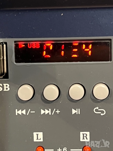 USB входен интерфейс: Позволява възпроизвеждане на аудио файлове от USB устройство. Използвайте LCD дисплея и бутоните за управление, за да навигирате и възпроизвеждате песни.