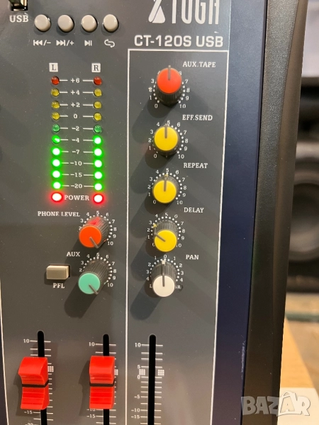 Всеки канал разполага с GAIN, 3-лентов еквалайзер (висок, среден, нисък), AUX, EFFECT, PAN контролни копчета и индивидуални фейдери за регулиране на силата на звука.
