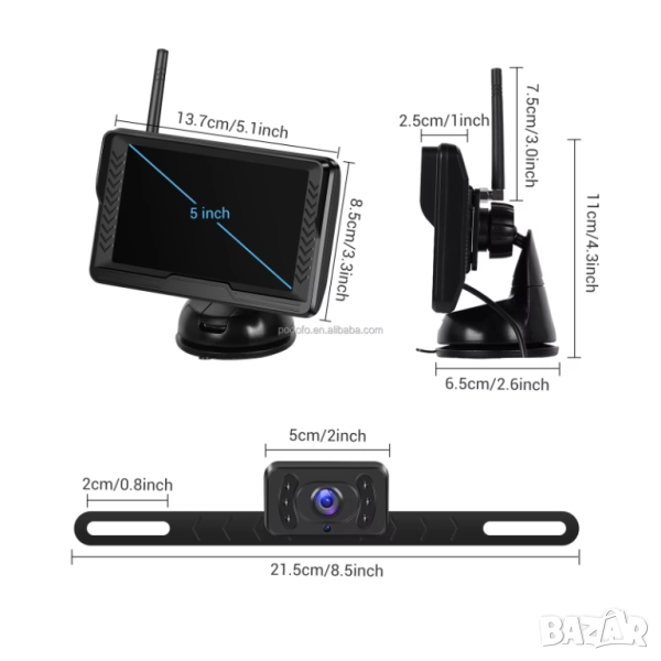 Безжична камера с монитор, за паркиране, бус, заден ход, кола, автобус, автомобил, задно виждане 12V