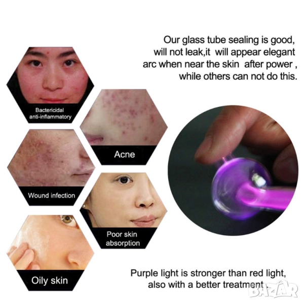 Дарсонвал 7 в 1 за лице, тяло, коса, акне, бръчки, лифтинг, гъбички