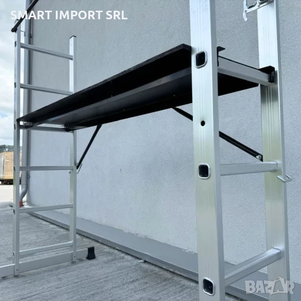 Двете странични опори за стабилизация осигуряват допълнителна безопасност в режим скеле, предотвратявайки люлеене или случайно накланяне.