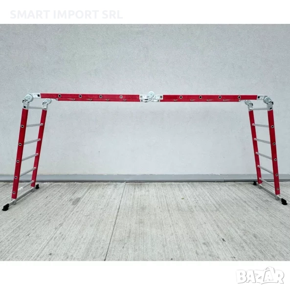 - Шарнирен дизайн: позволява различни позиции – А-образна стълба, права стълба, платформа, форма M или Z