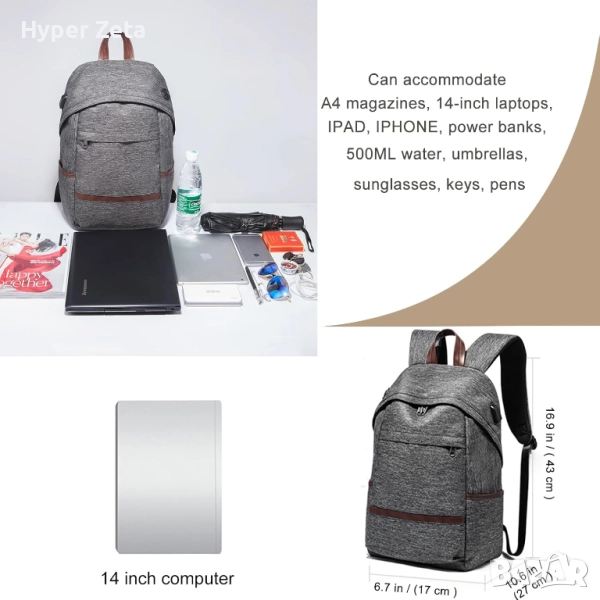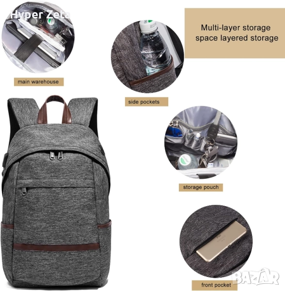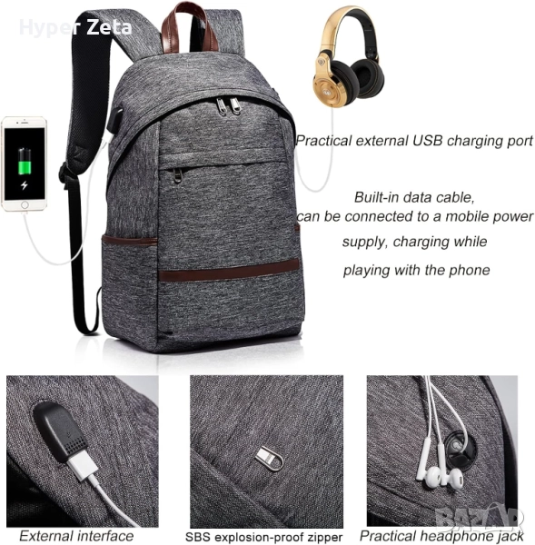 Раница за лаптоп, раница с USB порт и жак за слушалки, раница за пътуване, мъжка раница, дамска раница, раница за университет, побира лаптоп до 14 инча – подходяща за работа, училище и пътувания.
