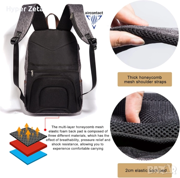 Раница, спортна, за пътуване, за лаптоп, с USB порт, с порт за слушалки