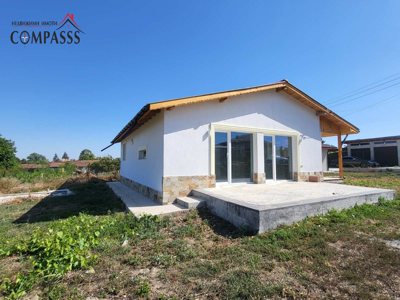 Предлагаме къща ново строителство, с двоен гараж и с двор в с. Паскалево, обл. Добрич. Имота се намира в централната част на селото, достъпа е по асфалтов път и в близост до всички комуникации.