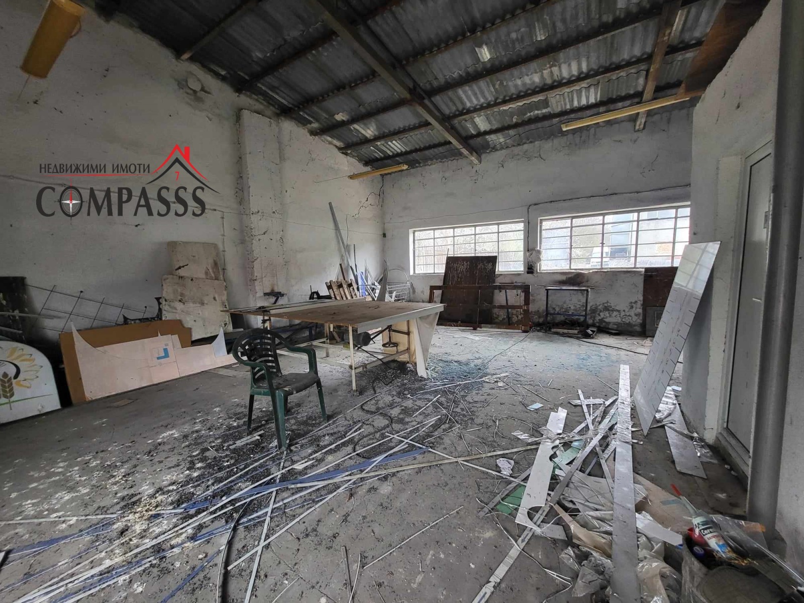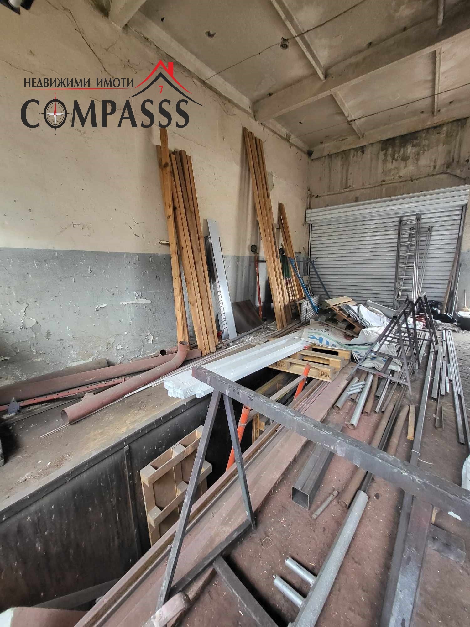 4 и 5 Общо помещение с площ 140кв. с две ролетни щори на входа, канал, отделен електромер, санитарно помещение със съблекалня и тоалет