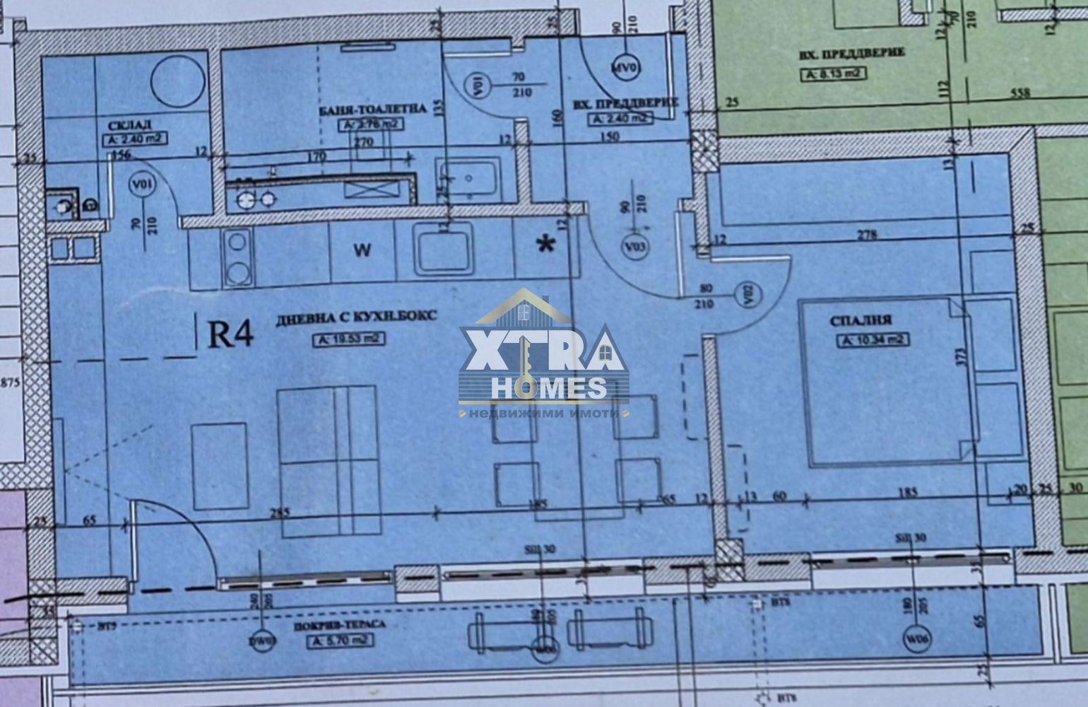 Разпределение: предверие, дневна с кухненски бокс, спалня, склад, баня с тоалетна, тераса