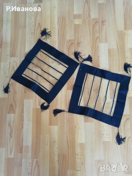 Нов комплект покривка, тишлайфер и 2 каренца в синьо и златисто.