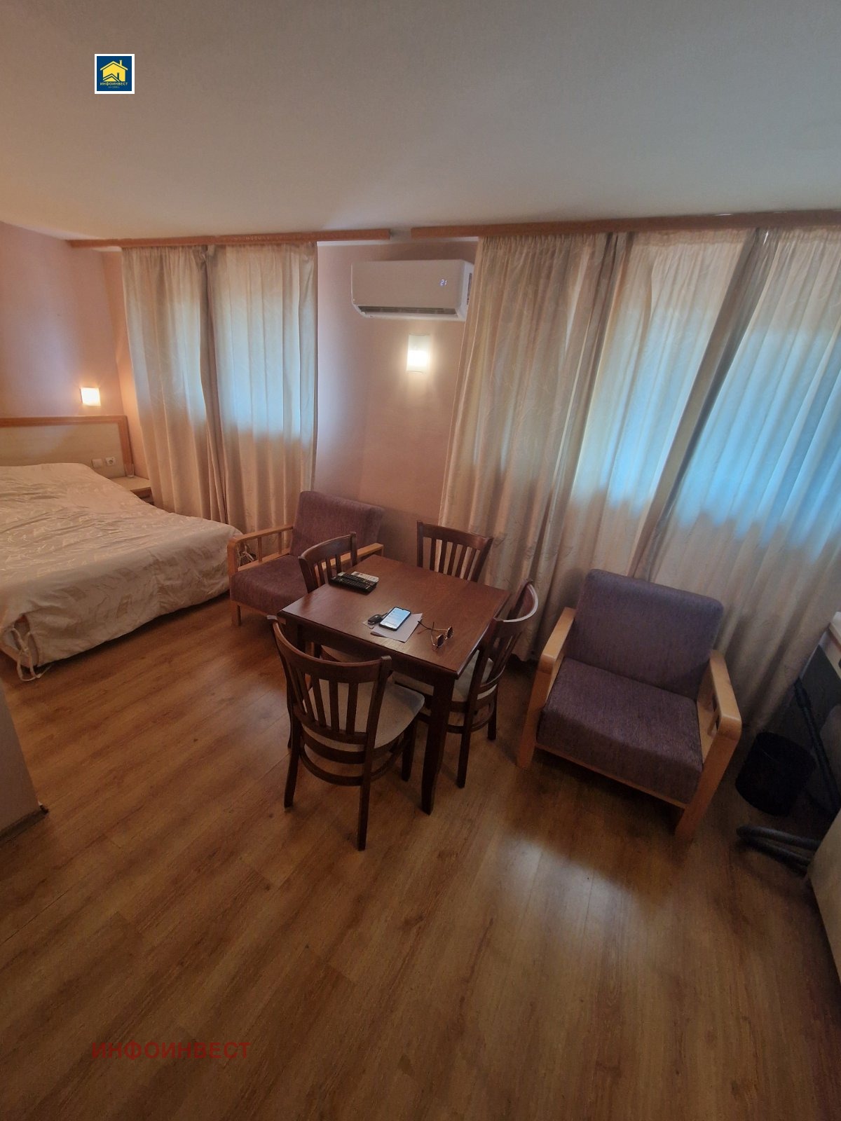 На Вашето внимание, предлага се двустаен апартамент в хотела, разположен на 6-ти етаж.
