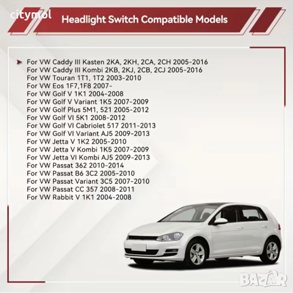 Ключ за светлини VW Golf, Jetta, Touran, Passat B6/B7/CC, функция AUTO ,1K0941431N