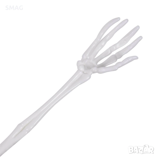 Създайте страховита Halloween / Хелоуин атмосфера с тази реалистична ръка на скелет! Изработена от качествена пластмаса, ръката е бяла и детайлна, идеална за декорация на дома, градината или парти пространство. Перфектна за добавяне на зловещи елементи към вашата Halloween / Хелоуин украса.
