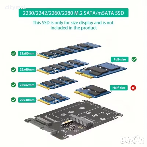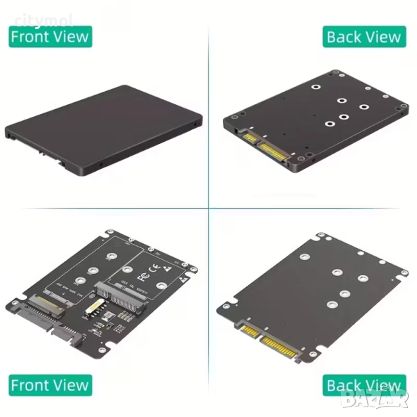 SSD адаптер 2 в 1, поддържащ mSATA и NGFF M.2 Key B, пластмасов корпус